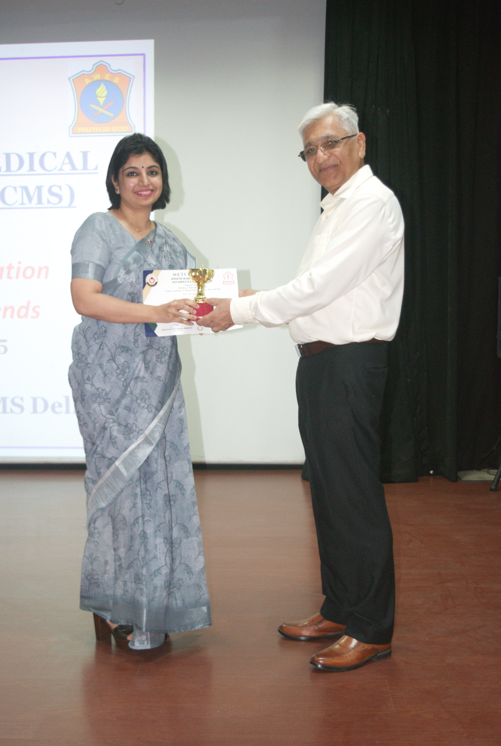 Dr. Samridhi Arora, Associate Professor in the Department of Anatomy, has been awarded the Best poster presentation award in METCON 2025 organised by the Medical Education Unit, Army College of Medical Sciences, New Delhi held on 8th and 9th oct 2025.
